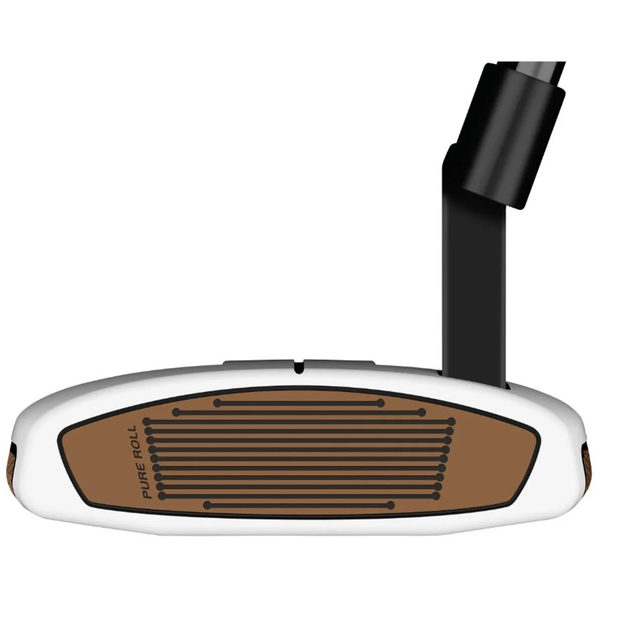 The Spider FCG putter looks like a mallet, feels like a blade, and forgives like a Spider. The forward CG placement delivers blade performance with the MOI of a mallet. CU Pure Roll Copper insert gives you a firm feel and incredible sound, while increasing topspin and improving forward roll. Heavy tungsten sole weights in the heel and toe optimize forward loading for strong contact.