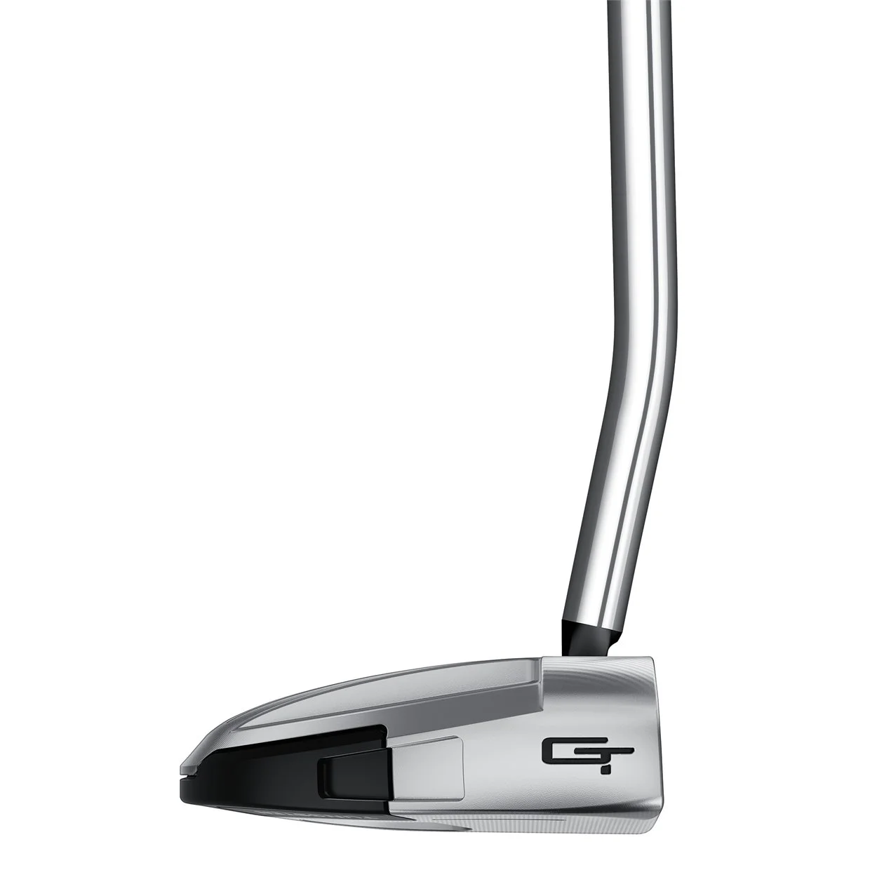 The Spider GT sets a new standard of putter performance and construction. A modern wing design features sharp angles and extreme perimeter weighting to create optimal forgiveness. The lightweight aluminum top plate reduces excess weight in the center of the head for a lighter feel. Steel side weights provide a heavy, stable frame that aids distance control. Just 18% of the weight is placed in the middle to stabilize deflection on off-center strikes to give you maximum forgiveness. A new, firmer PureRoll 2 Insert is made with TPU urethane and aluminum beams designed to enhance topspin across the entire face.