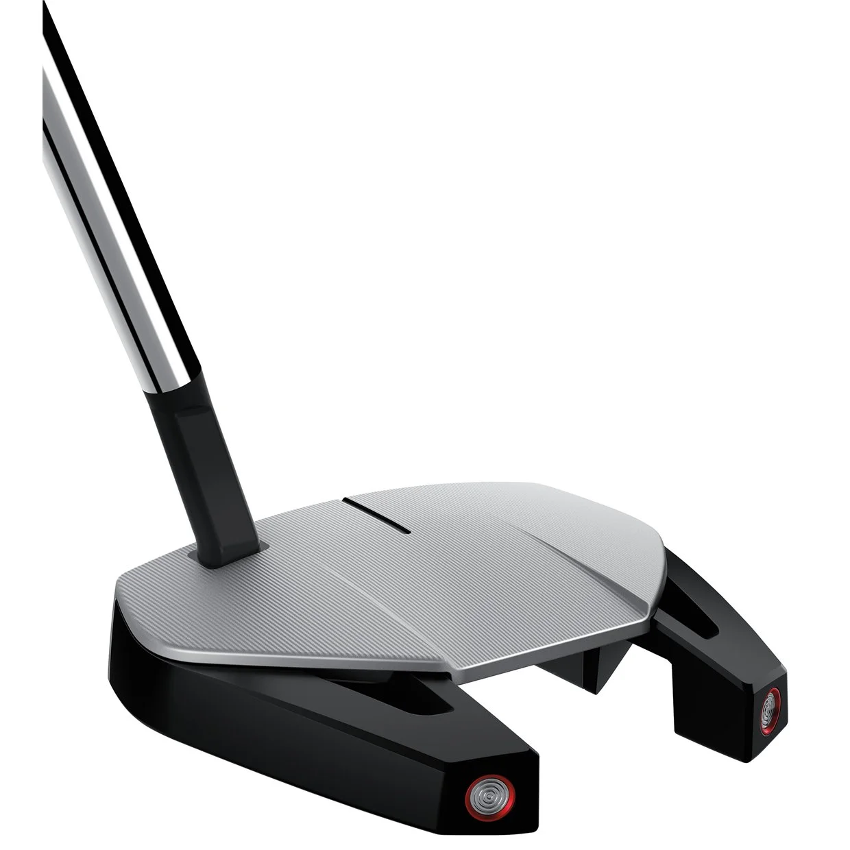 The Spider GT sets a new standard of putter performance and construction. A modern wing design features sharp angles and extreme perimeter weighting to create optimal forgiveness. The lightweight aluminum top plate reduces excess weight in the center of the head for a lighter feel. Steel side weights provide a heavy, stable frame that aids distance control. Just 18% of the weight is placed in the middle to stabilize deflection on off-center strikes to give you maximum forgiveness. A new, firmer PureRoll 2 Insert is made with TPU urethane and aluminum beams designed to enhance topspin across the entire face.