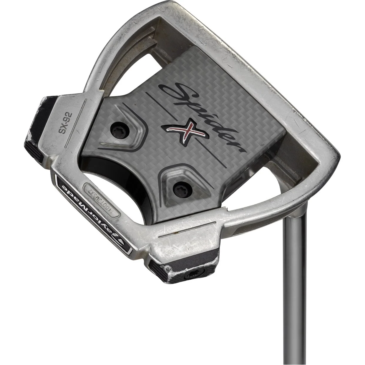 The timeless Spider design returns with a new finishing process called Hydro Blast. Water is applied to the blasting process to create a smooth, premium finish. Premium materials are used for incredible performance and stability. A heavy steel frame combined with aluminum/steel back weights and a lightweight composite sole maximize MOI. The unique “Y” design shape allows golfers to easily center the ball and visualize the path.
