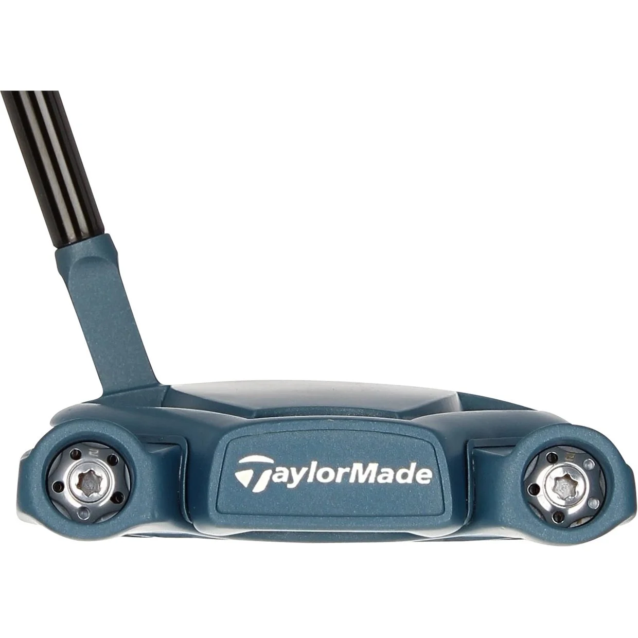 The Custom Tour Blue Titanium Spider putter is actually a customized Spider Tour Black putter. Redesigned with a smooth crown and no sight-line, the alignment system is clean and seamless. A short slant neck hosel, rarely found on high-MOI mallets, provide the player with expanded visibility of the face and toe hang. The Spider Tour Black has a firmer sound and feel than the Spider Tour Red, but both feature a lightweight body and stainless steel frame to increase MOI. The vibration-dampening PU foam provides a consistent sound and feel for every putt you take.