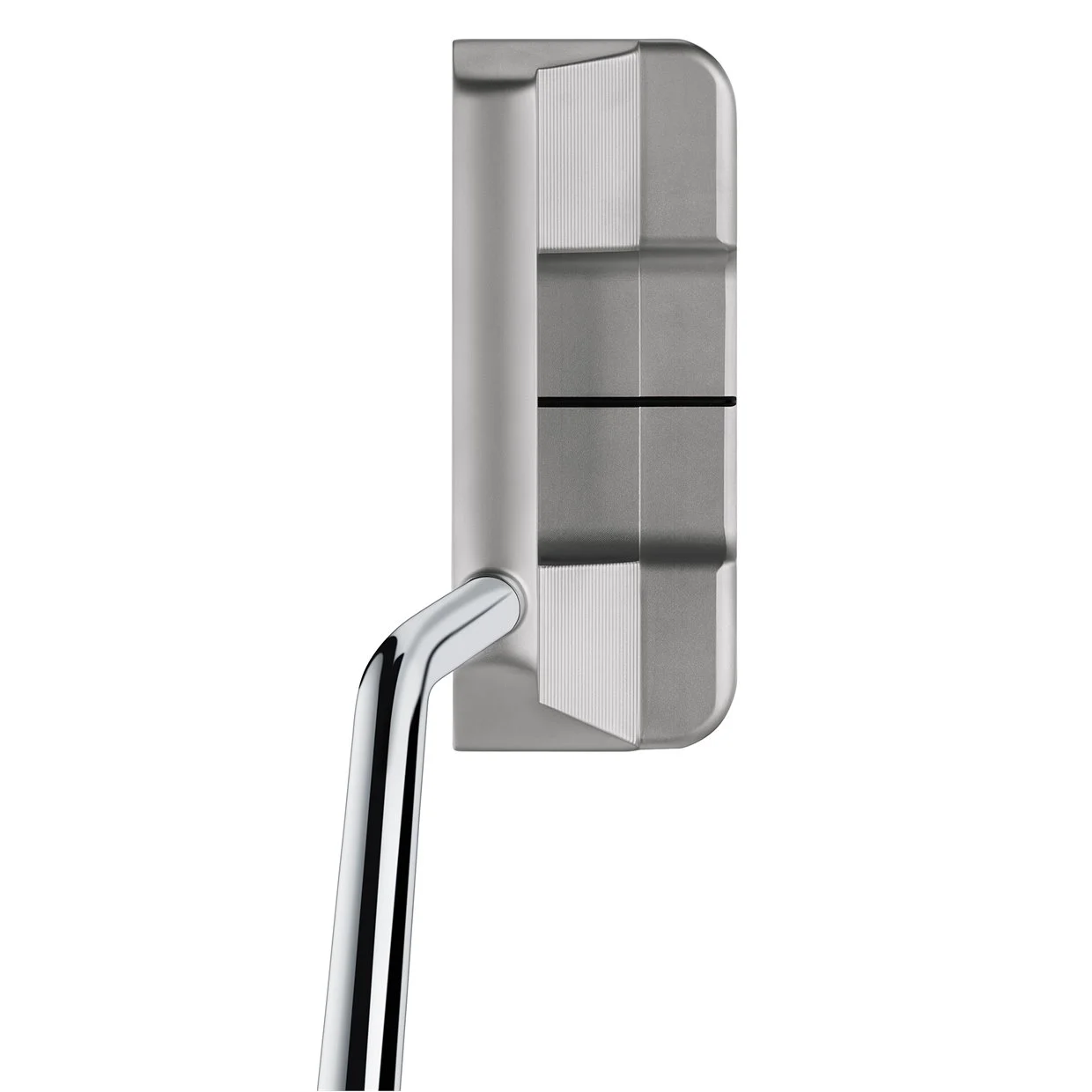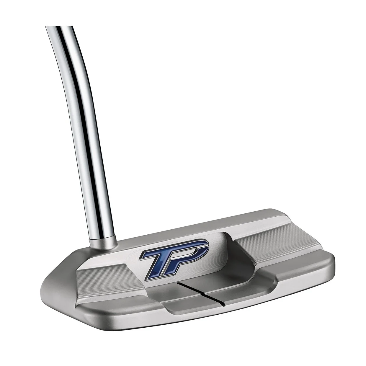 The new TP HYDROBLAST Putter collection features 303 stainless steel to create incredible feel and aesthetics. A White PureRoll Insert features specially designed grooves that face 45° downward that optimizes roll. Adjustable TP sole weights are unique to each stock length for a specific swing weight. The machine milling process creates flowing lines and natural curvatures for an exceptional look at address.